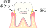 - 歯と歯肉の間が広くなり隙間になり、出血したり膿が出ます。口臭が起こる場合があります。